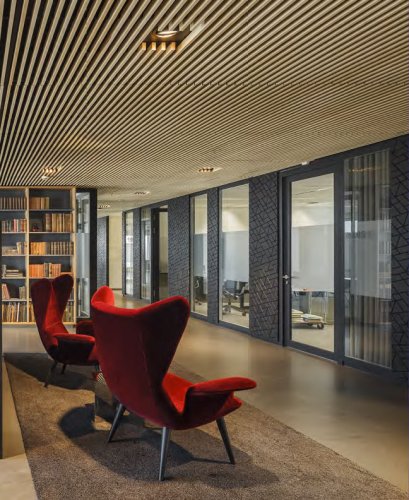 WoodLines es una terminación de chapas de madera natural para cielorraso lineales que permite generar un listoneado continuo que crea espacios atractivos y de gran calidez.