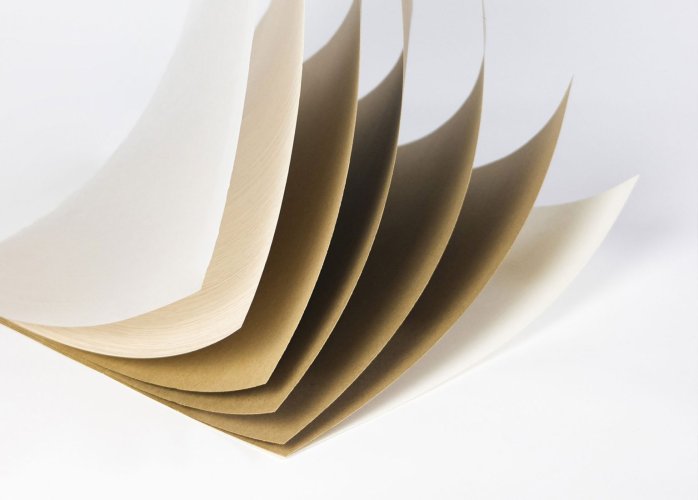 El papel Kraft utilizado para el núcleo de la hoja está impregnado con resinas fenólicas termoendurecibles, mientras que el papel decorativo de la superficie está tratado con resinas aminoplásticas melamínicas, diseñadas específicamente para ofrecer un gran rendimiento. Las capas impregnadas se apilan y se unen, y una vez cargadas en la prensa, se someten simultáneamente a la acción combinada de calor (a 150°C) y presión (hasta 9 MPa). La reacción de policondensación que ocurre crea enlaces químicos cruzados, haciendo que las resinas fenólicas y melamínicas se entrelacen de forma estable entre sí.