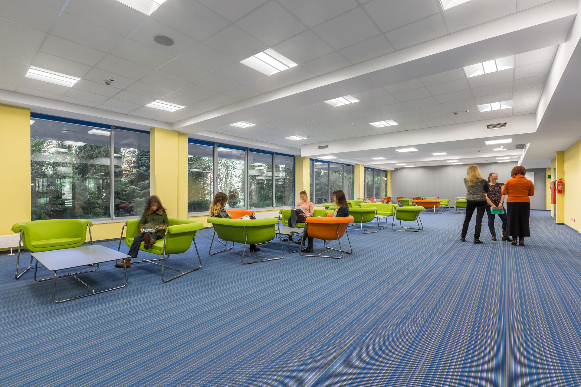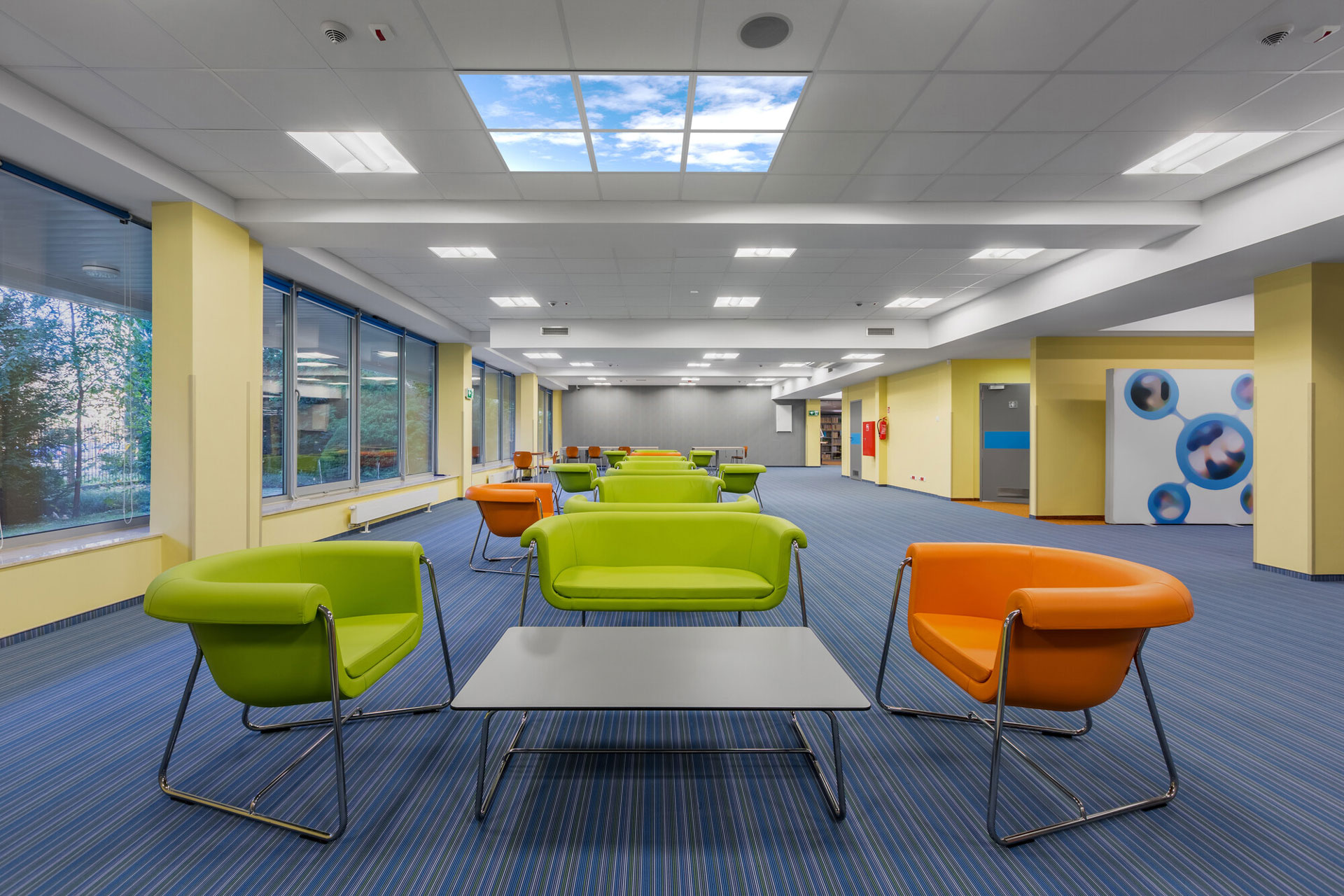 Corredores y salas de conferencias.