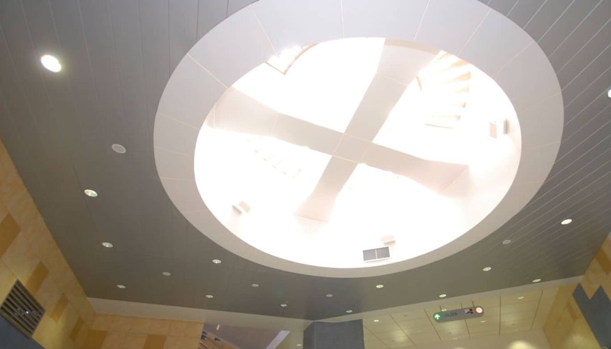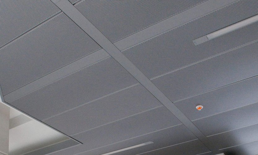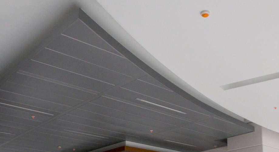 Cielorraso Metálico lineal ancho, de cantería cerrada, aporta carácter al diseño interior.