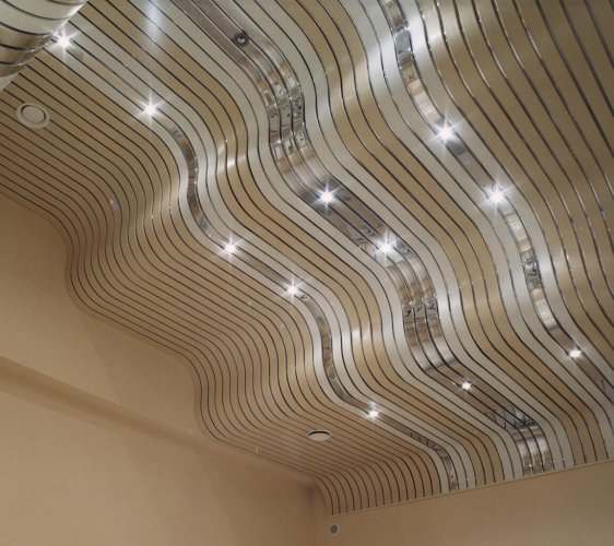 Cielorraso metálico suspendido útil para bajar la altura de los cielorrasos y cubrir detalles de obra gruesa.