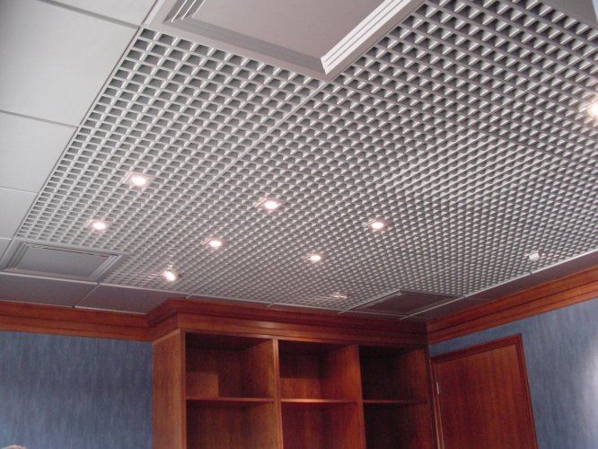 Cielorraso metálico abierto y transparente que puede formar una grilla de terminación lisa.
