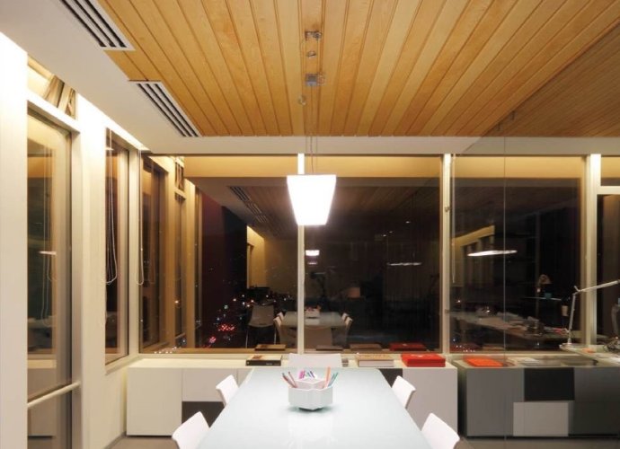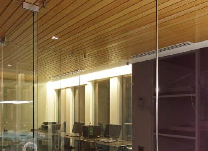 Cielorraso Metálico TIMBERLINE, tiene la particularidad de ofrecer una terminación lisa con pequeñas canterías entre los paneles prestándose por esto para diversos usos, incluso en aplicaciones residenciales. Su aspecto regular y plano es particularmente útil donde se requiera un Cielorraso liso que sea además liviano y acústico (panel perforado con tela acústica). La terminación de este Cielorraso puede ser woodgrains aparentado un tinglado de madera.