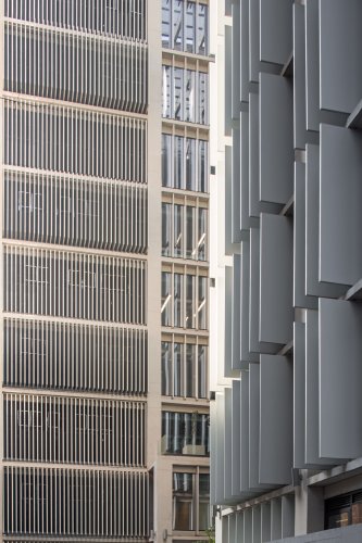 Los Quiebravistas Fins de Hunter Douglas son paneles metálicos de alta resistencia, aplicables para control solar y envolventes.