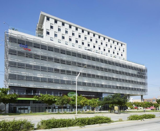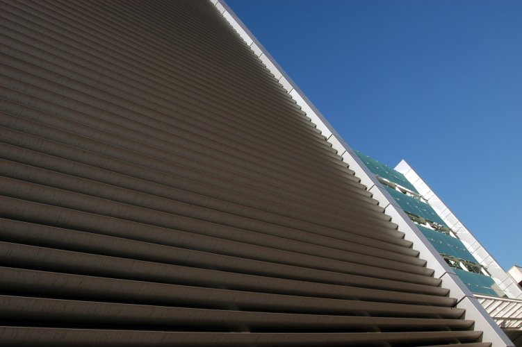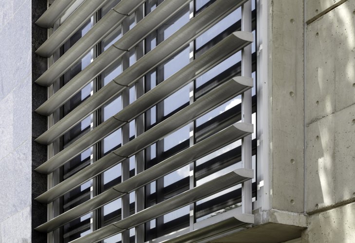 Cortasol lineal que permite regular la transparencia de las fachadas.