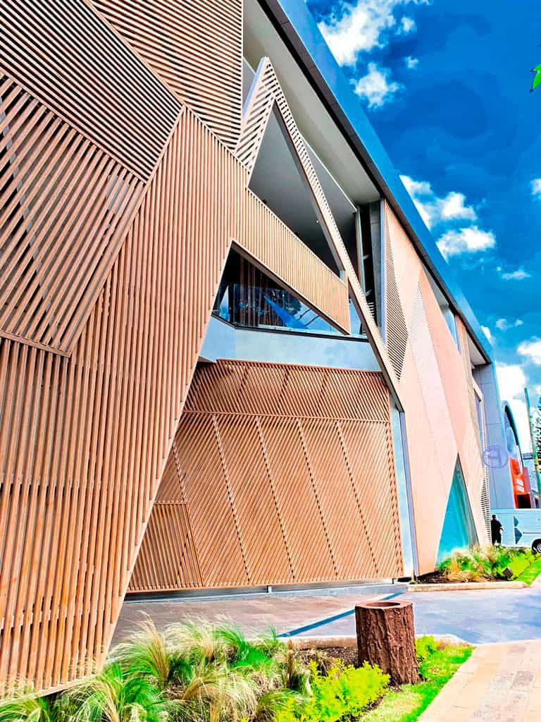 Aplicado fuera de losa, su uso proporciona protección solar y tamiza el ingreso de luz natural a la edificación sin obstruir las vistas entre interior y exterior.