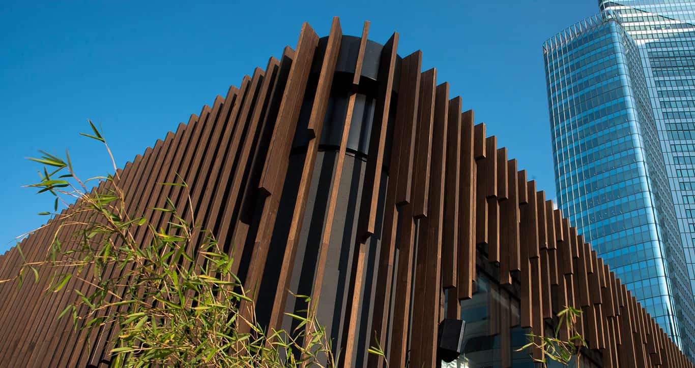 Fins de bambú es una solución arquitectónica de quiebravista lineal de alto desempeño, que combina las ventajas estructurales y estéticas de la madera de bambú. Los listones laminados son fabricados por MOSO®, empresa holandesa líder en el desarrollo y procesamiento del bambú.