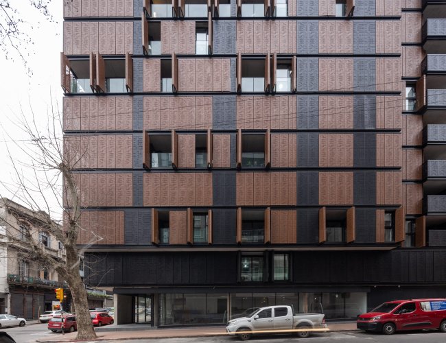 2.-Metalbrise, Aerowing y Quadrobrise, con diversas geometrías en aluminio o Aluzinc. Disponible en terminación Mineralgrains y Woodgrains, y la opción de pintura de nuestra carta de colores exteriores.