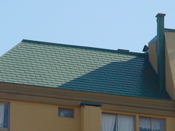 – Teja metálica termoesmaltada de forma rectangular, que se une entre sí con traslapos horizontales y emballetado vertical, lo que asegura una mayor hermeticidad.