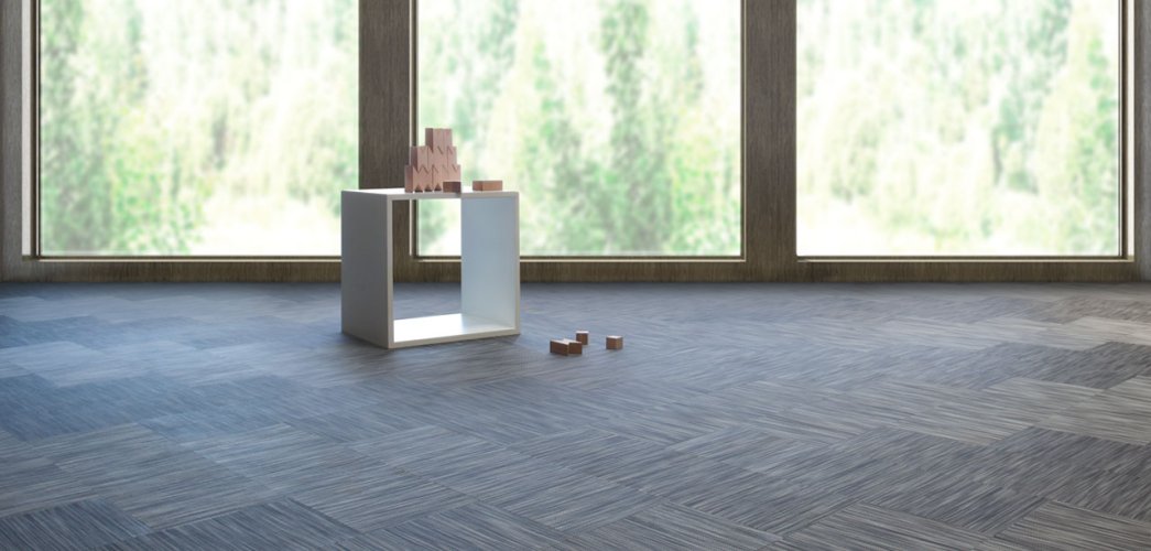 Revestimiento para suelos interiores fabricado con fibras de poliéster de alta tenacidad recubiertas de vinilo.