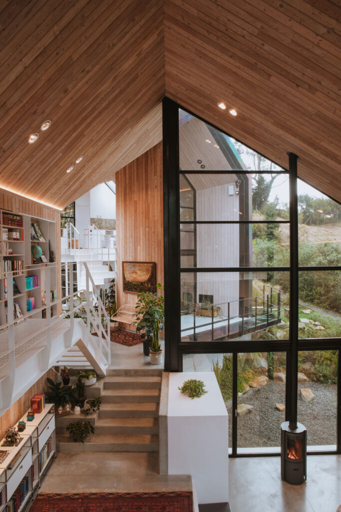 La Casa SKL es una casa de cuatro módulos que se escalonan sobre una topografía inclinada. Los módulos están unidos por dos túneles de jardines que crean una sola unidad. Las piezas están rotadas para crear aberturas angulares que permiten crear jardines interiores. La casa es negra en el exterior y de madera clara en el interior. Tiene niveles y dobles alturas, y la luz nunca entra en la misma dirección. Las fachadas acristaladas y rotadas generan una transparencia transversal en toda la casa. La casa tiene un puente, una pasarela metálica, un taller de cerámica, una malla sobre una doble altura y una sala turca. Es un hogar que se descubre al recorrerlo, un lugar de perspectivas asimétricas y de contrastes entre sus acabados.